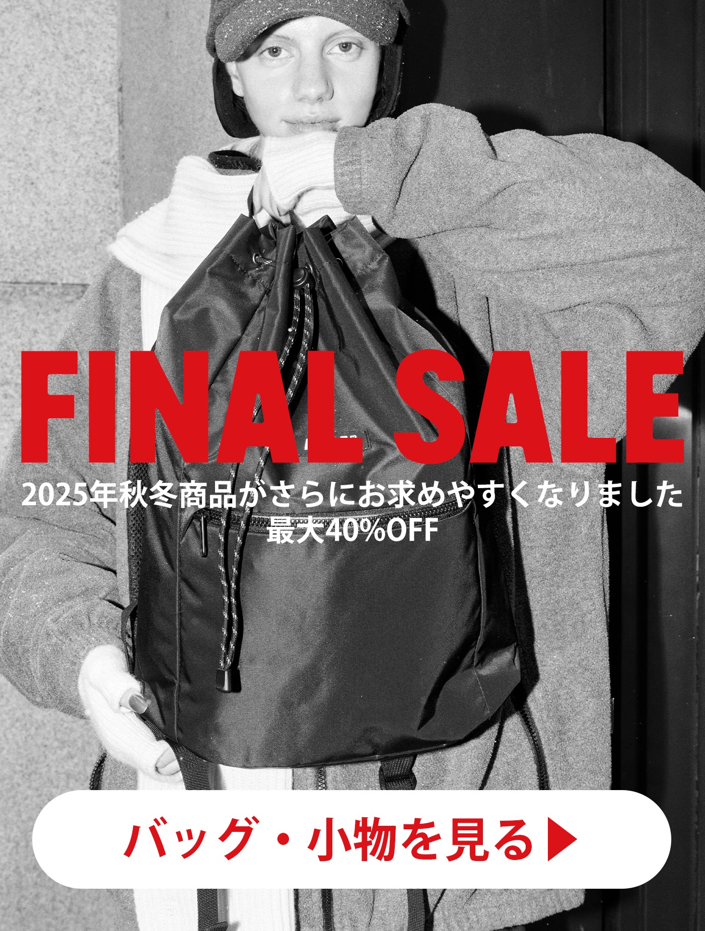 25FW商品が最大40%OFF!商品追加&再値下げで、さらにお求めやすくなりました。
