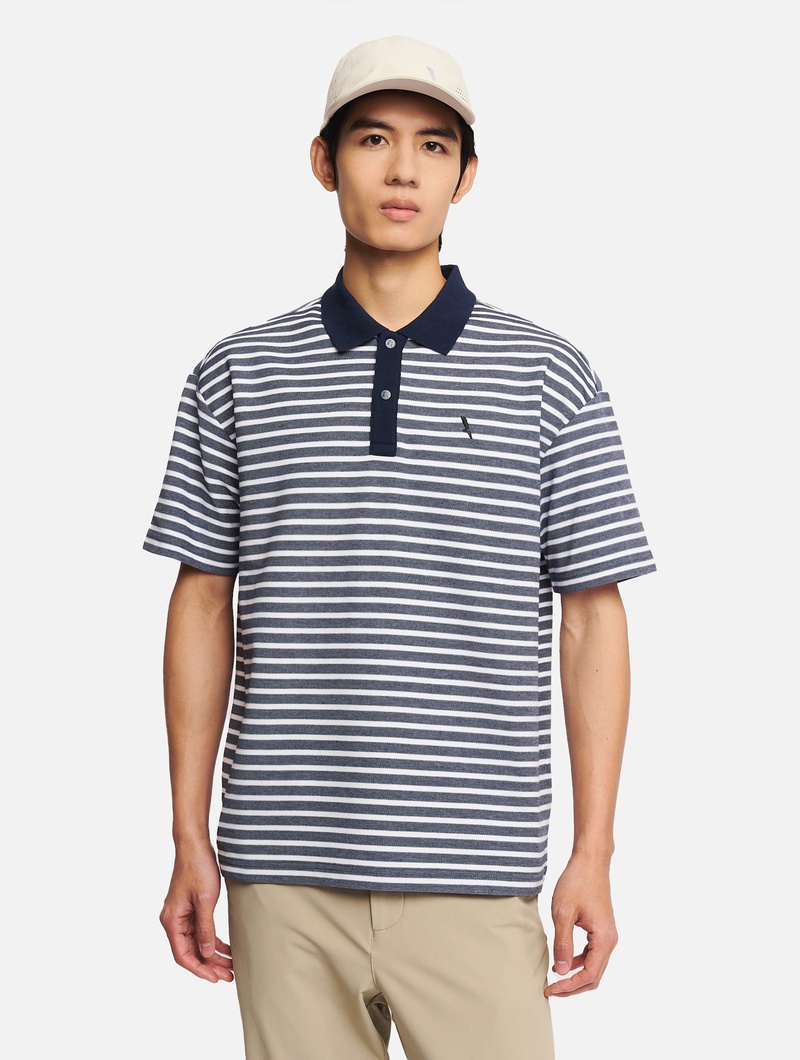 吸水速乾 テクスチャードストライプ 半袖ポロシャツ