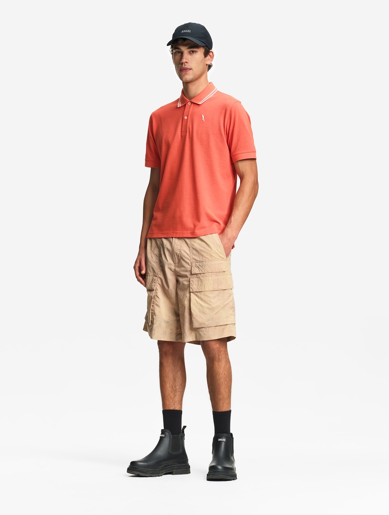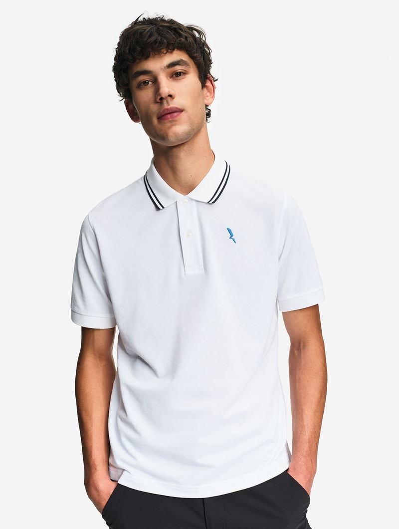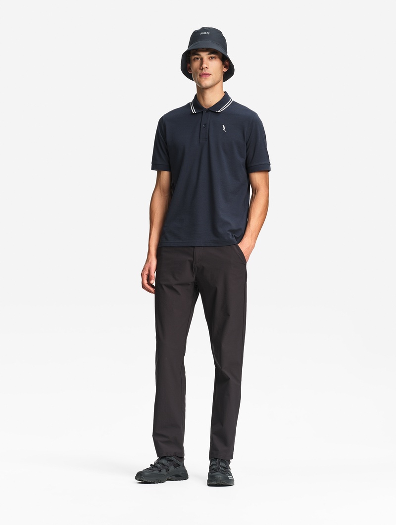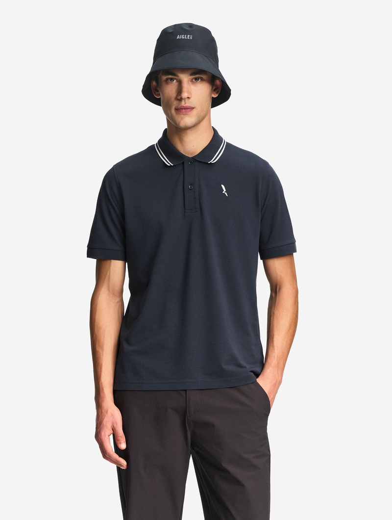 吸水速乾 襟ストライプポロシャツ