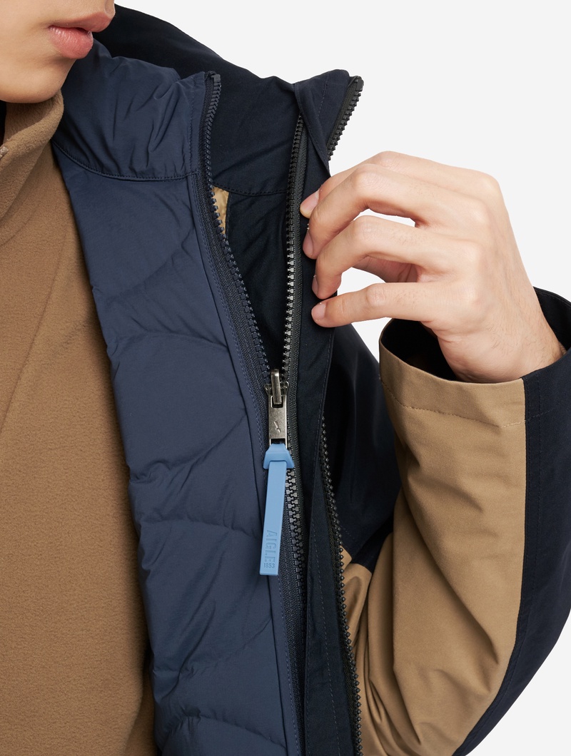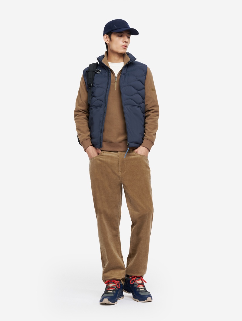 - ・素材:本体1: 89% ポリエステル 11% ポリウレタン / 本体2: 91% ポリエステル 9% ポリウレタン / ポケット袋: 100% ポリエステル / 中わた: ダウン 90% フェザー 10% / 動物由来の繊維ではない素材を含む