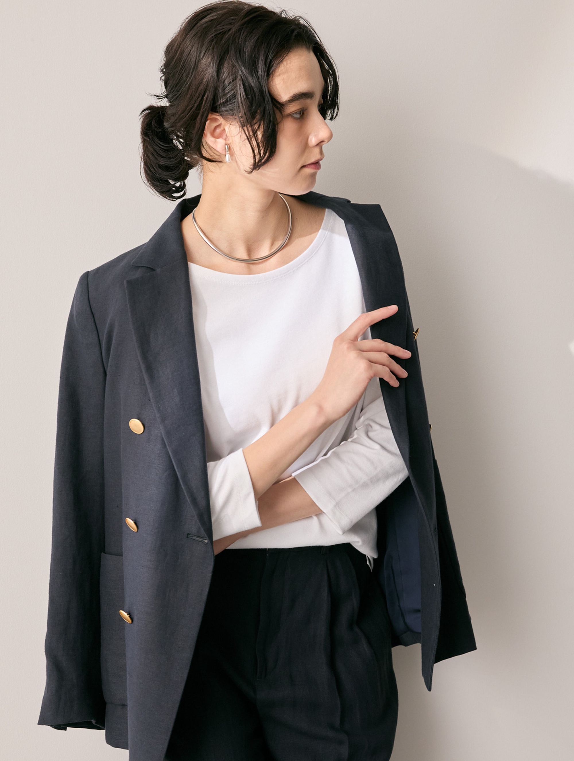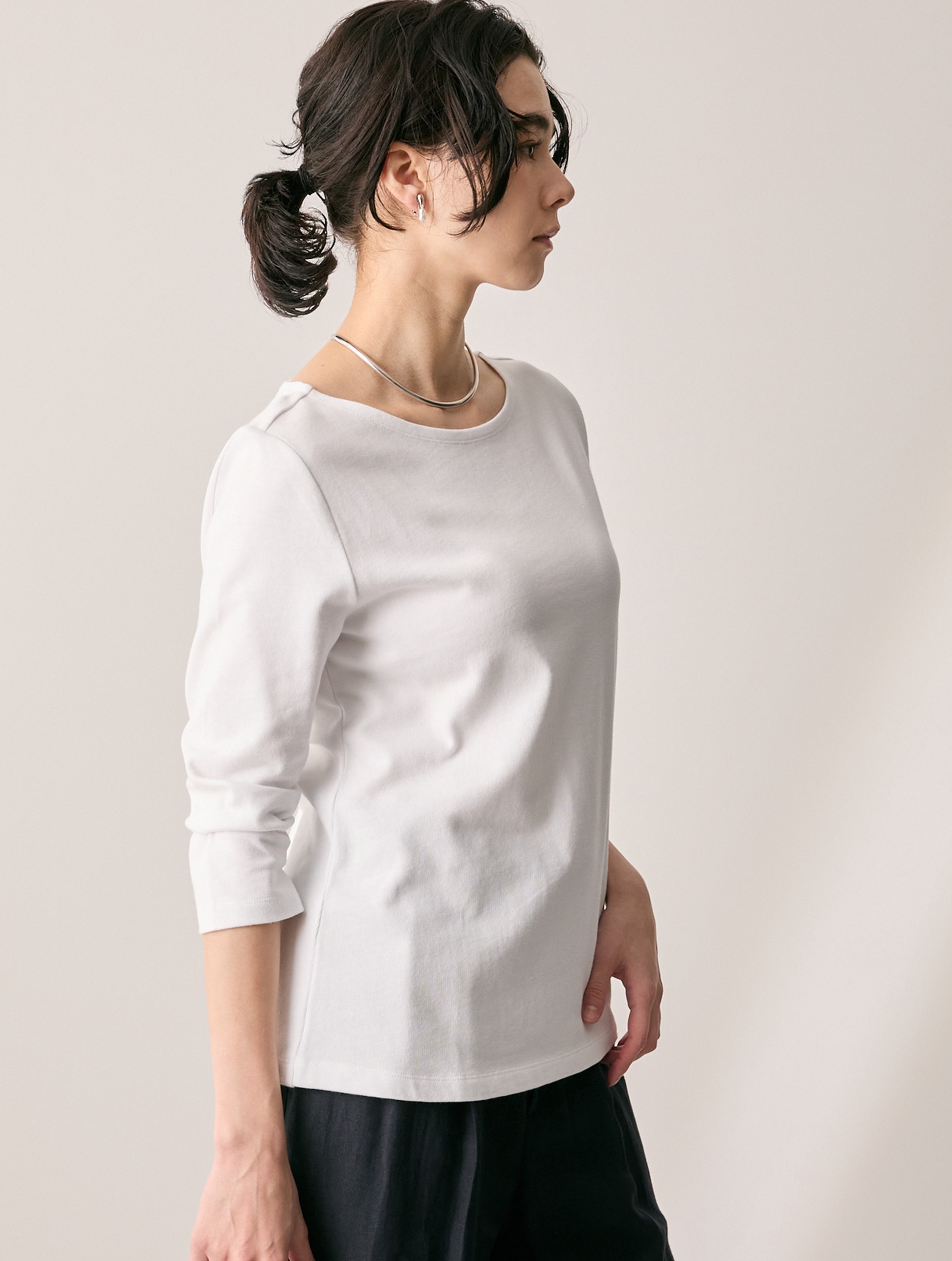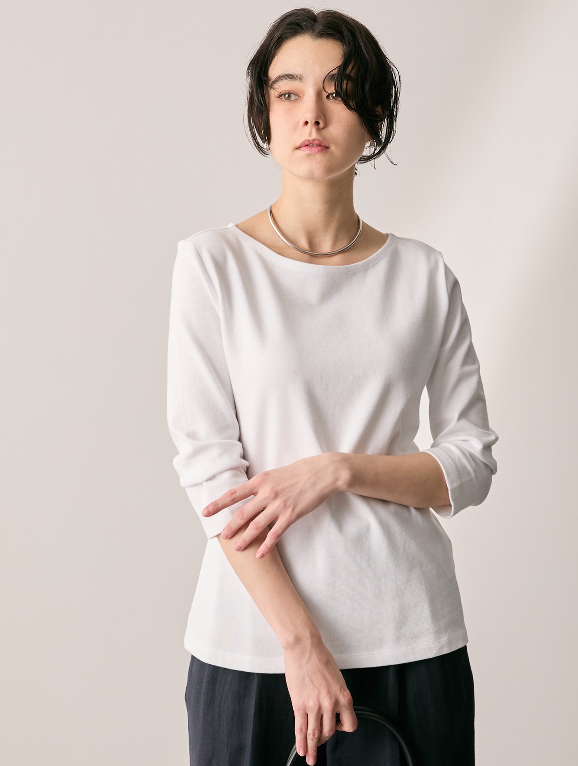 ボートネック 七分丈 Tシャツ