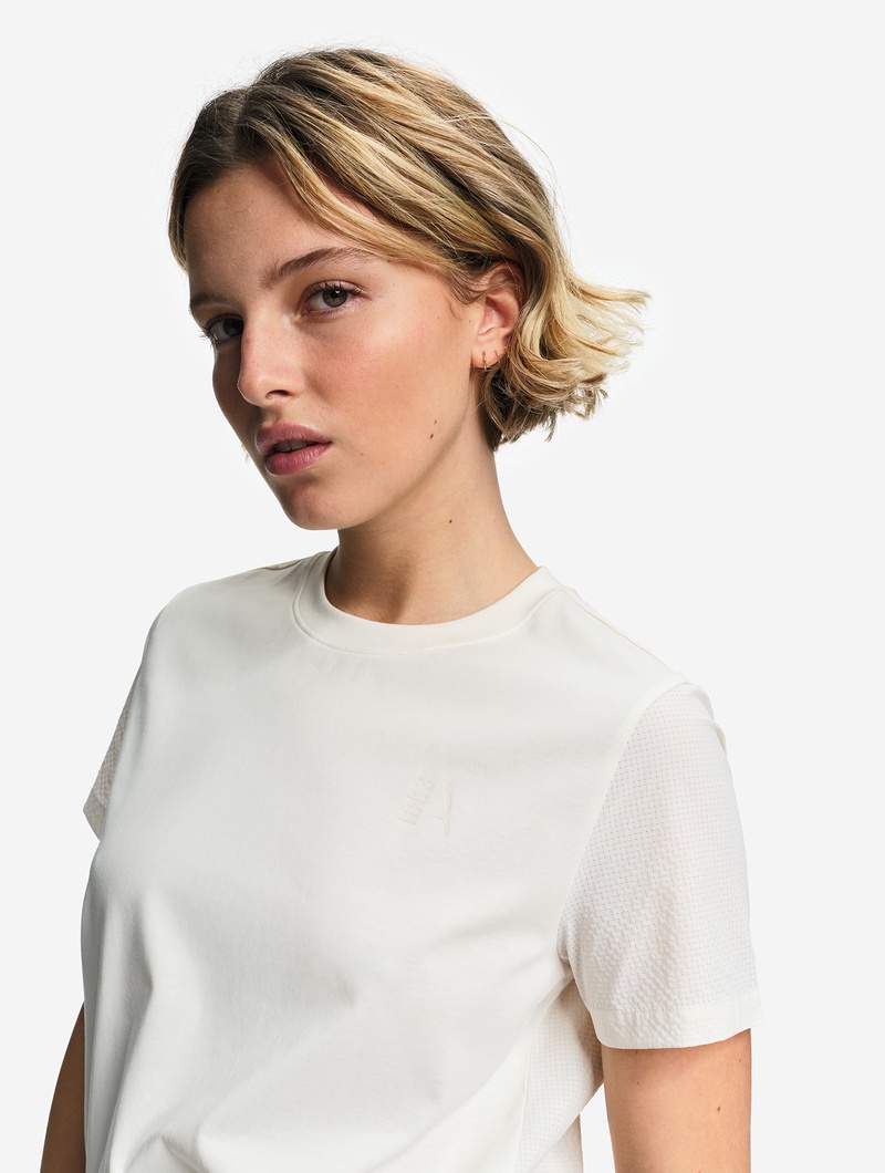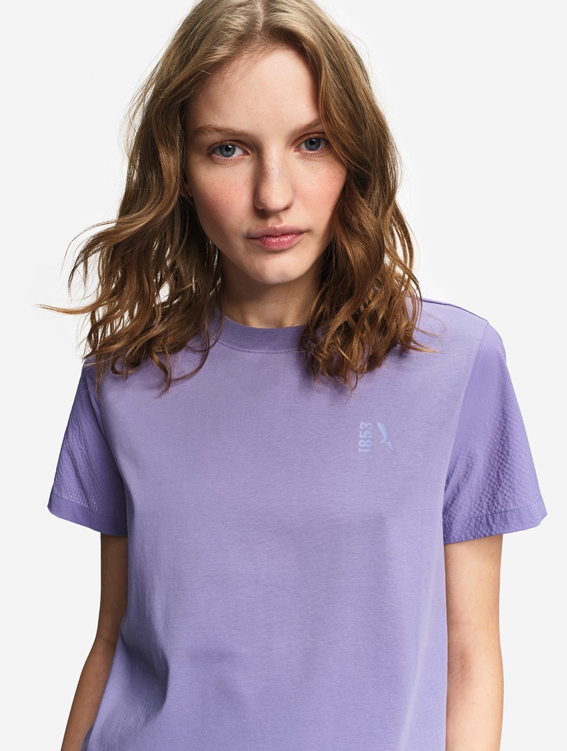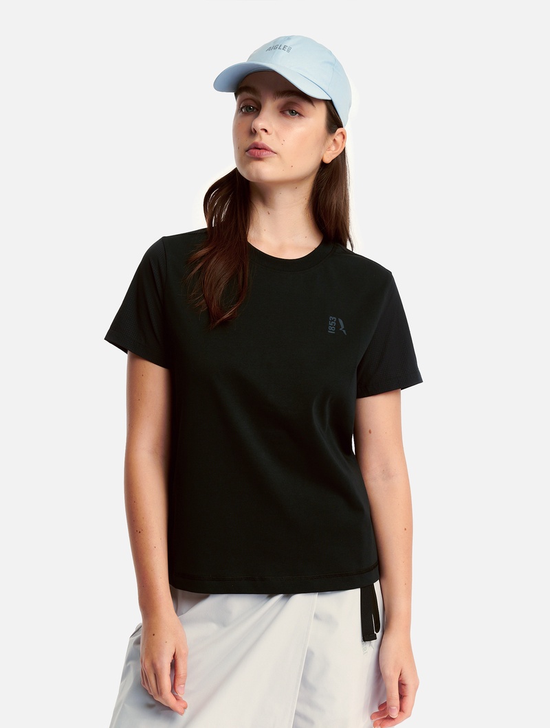 接触冷感 ミックス素材 半袖ロゴTシャツ