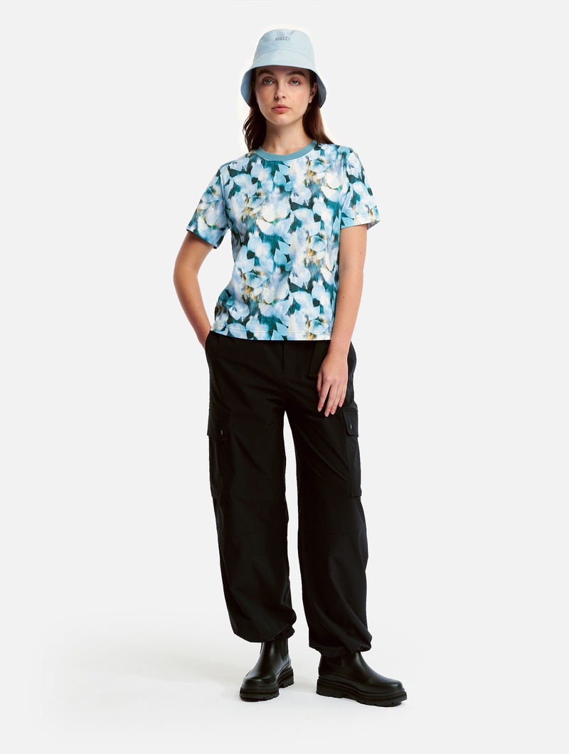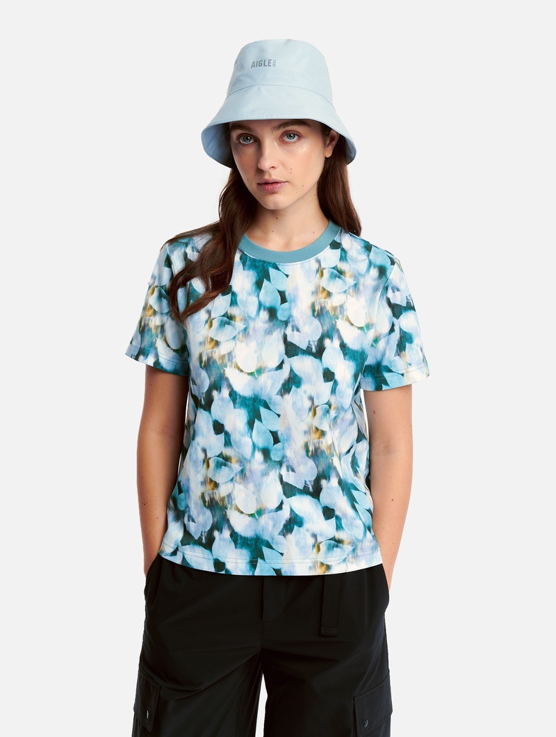 UVカット 半袖リーフプリントTシャツ